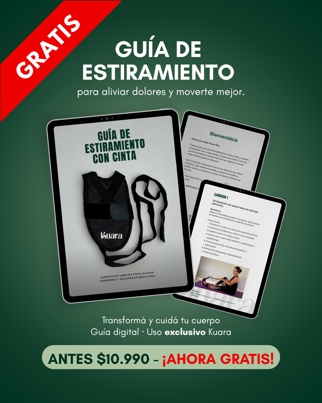Si pasás muchas horas sentado, con músculos tensos o poca movilidad, tu cuerpo te está pidiendo un cambio. Con la cinta de estiramiento Kuara, vas a liberar tensión, mejorar tu postura y volver a sentirte en eje… en casa y en solo unos minutos por día.